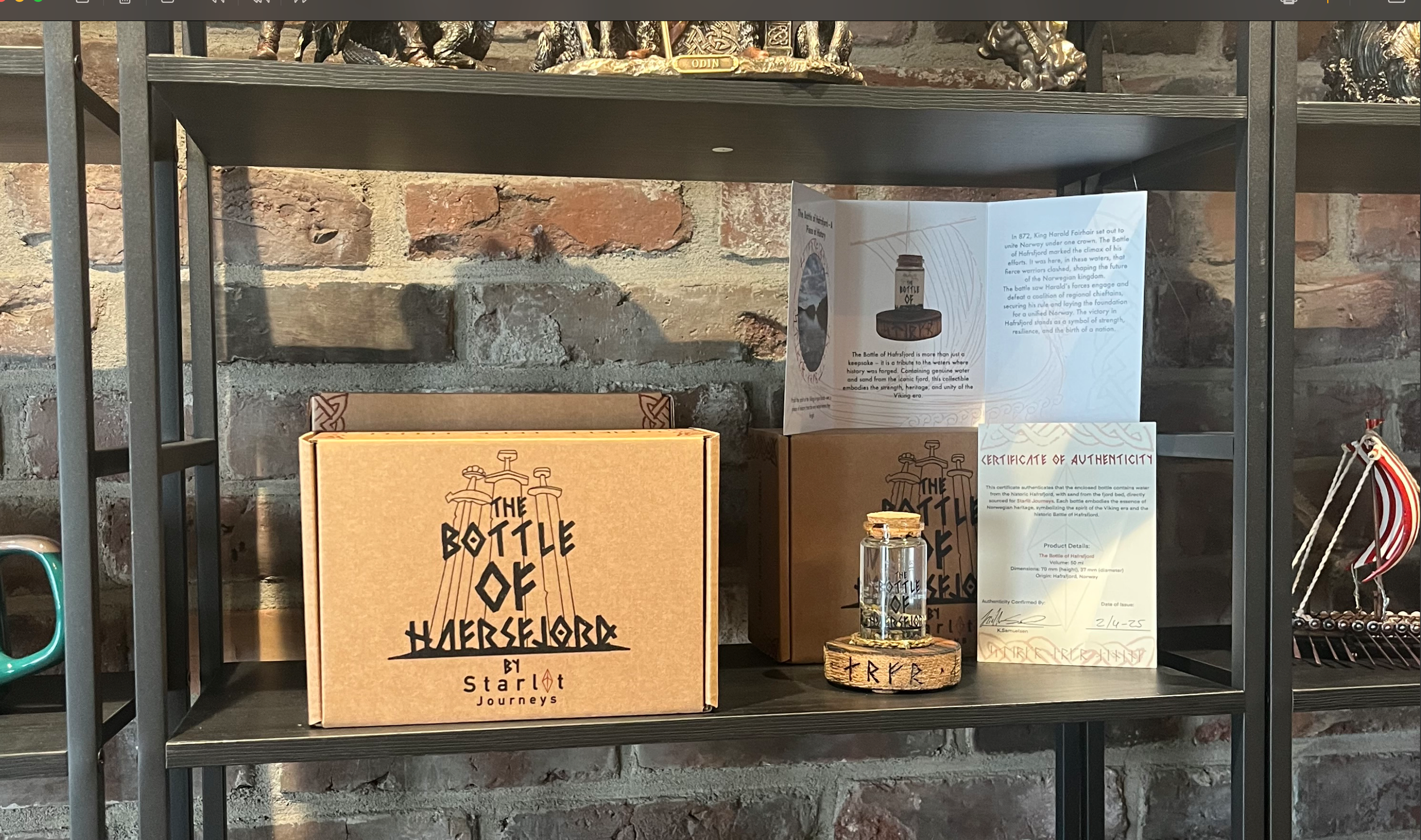 The Bottle of Hafrsfjord is more than just a keepsake – it is a tribute to the waters where history was forged. Containing genuine water and sand from the iconic fjord, this collectible embodies the strength, heritage, and unity of the Viking era.